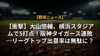 【衝撃】大山悠輔、セ初満塁本塁打!阪神タイガース、惜敗も横浜スタジアムで21号&2打席連発!大山満塁弾のニュース概要 セ・リーグの試合で、阪神・大山悠輔内野手がDeNA戦においてセ・リーグ一番乗りの満塁本塁打を記録しました。試合...