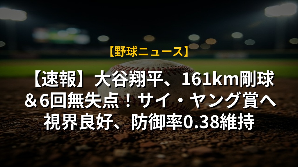【速報】大谷翔平、161km剛球&6回無失点!サイ・ヤング賞へ視界良好、防御率0.38維持