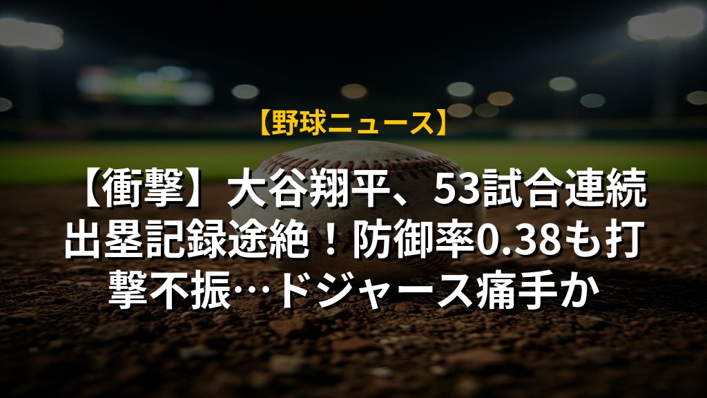【衝撃】大谷翔平、53試合連続出塁記録途絶!防御率0.38も打撃不振…ドジャース痛手かの注目ポイントまとめ
