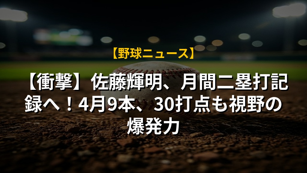 【衝撃】佐藤輝明、月間二塁打記録へ!4月9本、30打点も視野の爆発力の注目ポイントまとめ