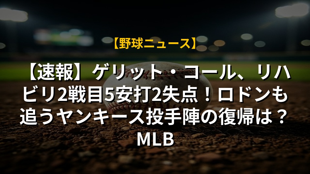 【速報】ゲリット・コール、リハビリ2戦目5安打2失点!ロドンも追うヤンキース投手陣の復帰は?MLBの注目ポイントまとめ