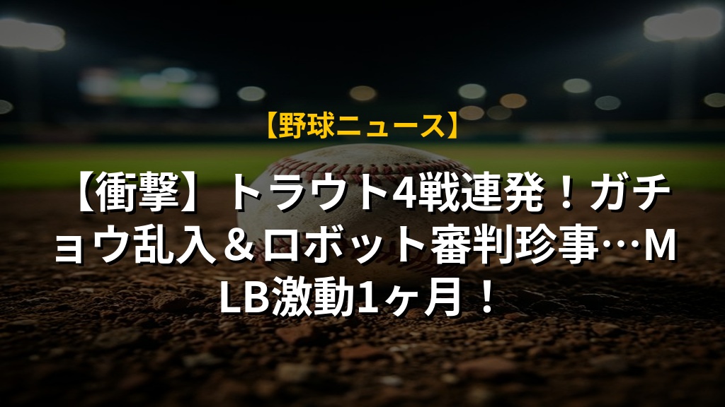 今月のMLBは、まるでジェットコースターのような展開でしたね!カブスの試合に現れたガチョウや、トラウト選手のヤンキースタジアムでの歴史的ホームランなど、記憶に残る出来事が盛りだくさんです。特に、ロボット審判による珍しい判定は、野球のルールとテクノロジーの関わり方を改めて考えさせられます。まだまだ課題はありますが、より公平で面白い野球になるよう、今後のルール改正やシステム改善に期待したいです。野球の奥深さと、予測不能な面白さを改めて感じさせてくれる一ヶ月でした。