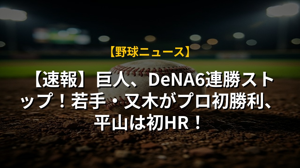 怪我人が相次ぐ中、巨人が若手の活躍でDeNAの連勝を6で止めましたね!平山選手のプロ初ホームランや小浜選手のプロ初打点など、明るいニュースが続きました。また、又木投手のプロ初勝利もチームに勢いを与えているようです。