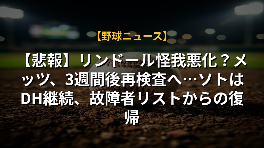 【悲報】リンドール怪我悪化?メッツ、3週間後再検査へ…ソトはDH継続、故障者リストからの復帰の注目ポイントまとめ