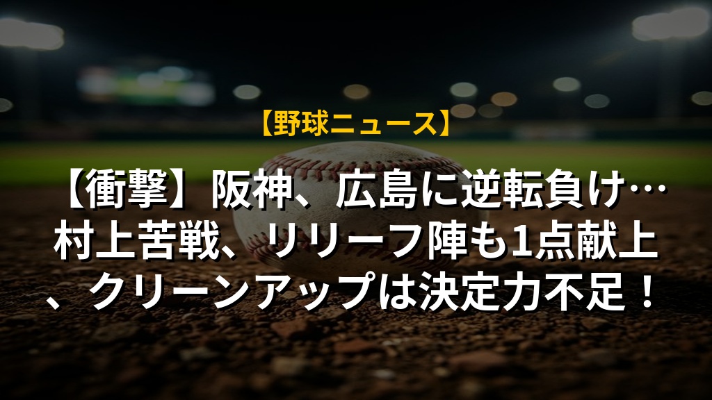 【衝撃】阪神、広島に逆転負け…村上苦戦、リリーフ陣も1点献上、クリーンアップは決定力不足!の注目ポイントまとめ