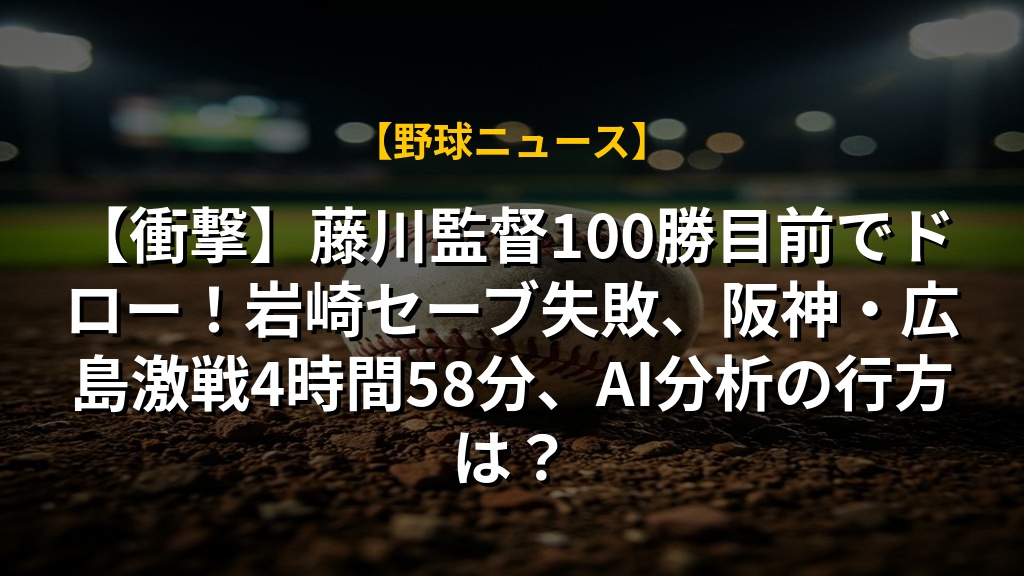 【衝撃】藤川監督100勝目前でドロー!岩崎セーブ失敗、阪神・広島激戦4時間58分、AI分析の行方は?の注目ポイントまとめ