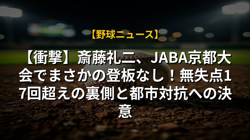 【衝撃】斎藤礼二、JABA京都大会でまさかの登板なし!無失点17回超えの裏側と都市対抗への決意の注目ポイントまとめ