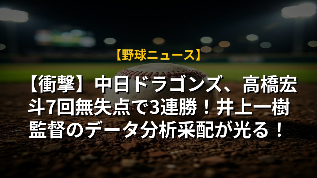 【衝撃】中日ドラゴンズ、高橋宏斗7回無失点で3連勝!井上一樹監督のデータ分析采配が光る!の注目ポイントまとめ