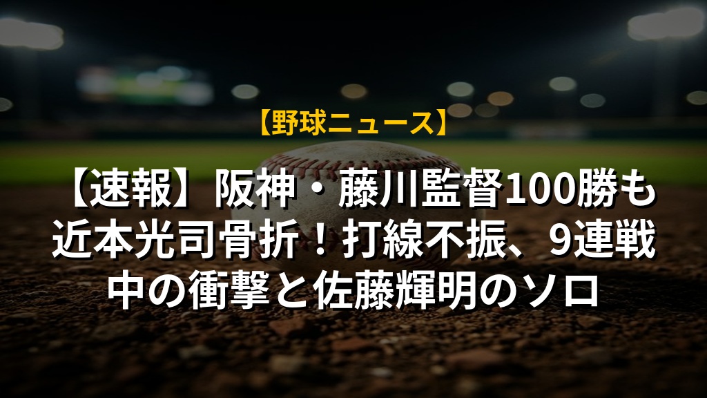 【速報】阪神・藤川監督100勝も近本光司骨折!打線不振、9連戦中の衝撃と佐藤輝明のソロ