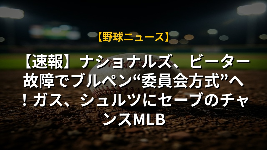 ナショナルズのビーター投手が右前腕痛で故障者リスト入りとなりました。チームは若手シュルツ投手を昇格させ、初セーブを挙げさせています。昨今のMLBではクローザーの固定概念が薄れ、ブルペンを状況に応じて使い分ける「委員会形式」が広がる中で、ナショナルズもガス投手にセーブ機会が増える可能性があります。ブルージェイズも同様の戦略を採用しており、ヴァーランド兄弟の活躍が目覚ましいです。各球団の緻密なブルペン戦略と、若手投手の台頭に今後も注目していきたいですね。