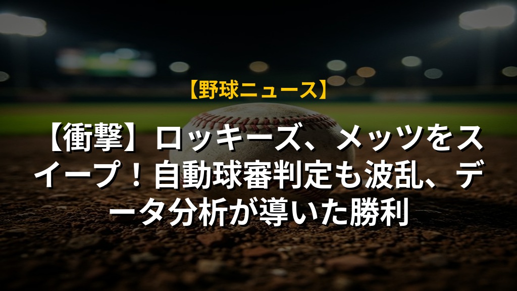 【衝撃】ロッキーズ、メッツをスイープ!自動球審判定も波乱、データ分析が導いた勝利の注目ポイントまとめ
