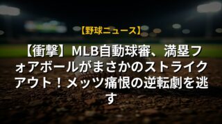 【衝撃】MLB自動球審、満塁フォアボールがまさかのストライクアウト!メッツ痛恨の逆転劇を逃すMLB自動球審のニュース概要 ニューヨーク・メッツのブレット・バティー選手が、MLBの新チャレンジシステムによって、満塁でのフォアボール...