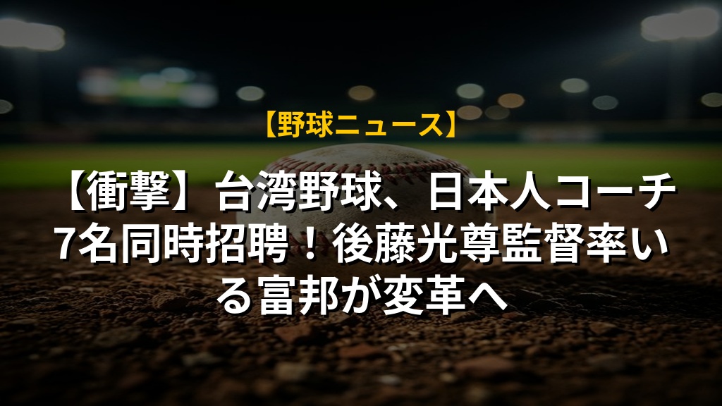 【衝撃】台湾野球、日本人コーチ7名同時招聘!後藤光尊監督率いる富邦が変革へ