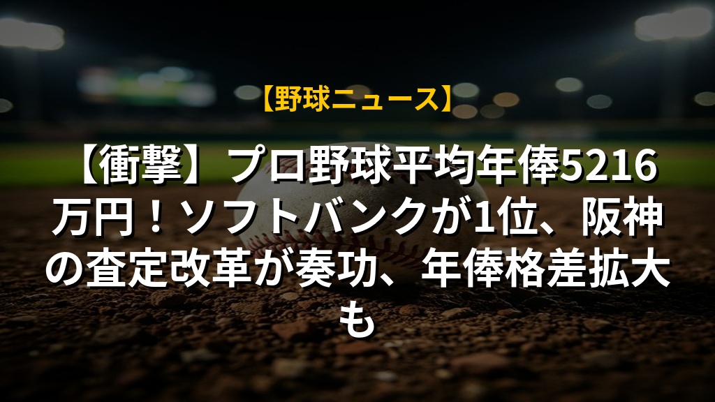 プロ野球選手の平均年俸が過去最高の5216万円となった年俸調査結果が発表されました。ソフトバンクが球団別年俸1位で、日本ハムも躍進を見せています。一方で、年俸の二極化や契約更改への満足度が低い現状も浮き彫りになりました。