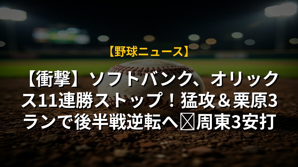 【衝撃】ソフトバンク、オリックス11連勝ストップ!猛攻&栗原3ランで後半戦逆転へ🔥周東3安打