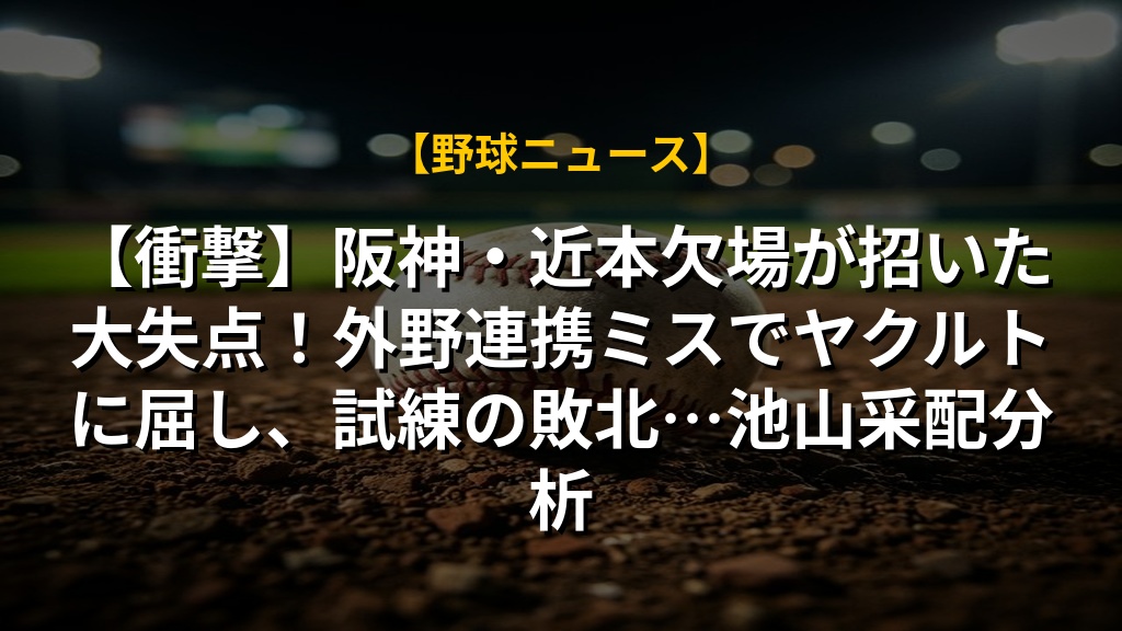 - 序盤の大量失点は、外野手の連携ミスがきっかけで、近本選手の不在が大きく影響した。