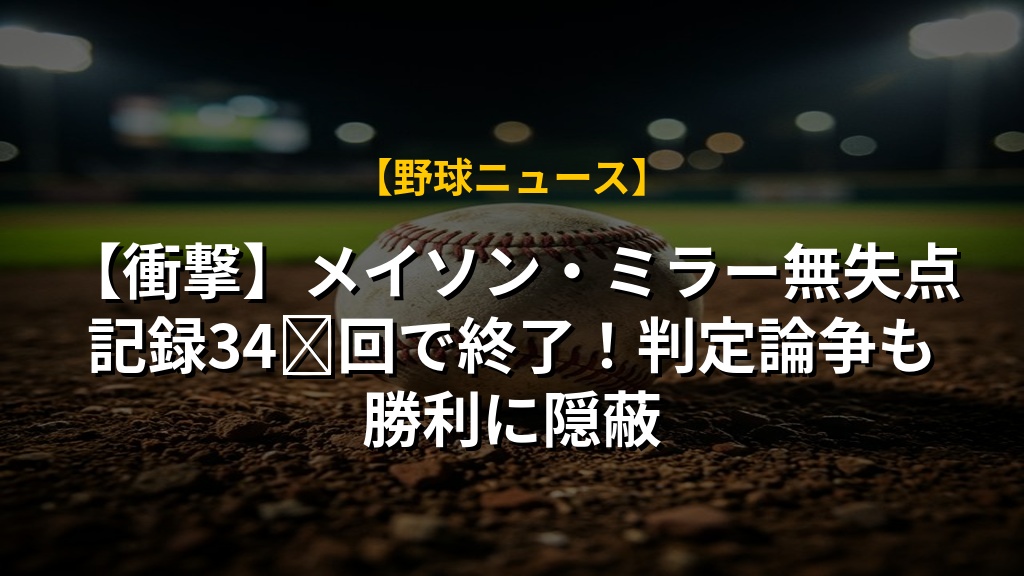 【衝撃】メイソン・ミラー無失点記録34⅔回で終了!判定論争も勝利に隠蔽