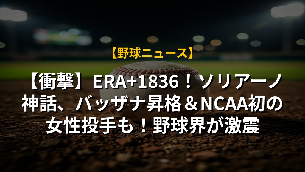 【衝撃】ERA+1836!ソリアーノ神話、バッザナ昇格&NCAA初の女性投手も!野球界が激震