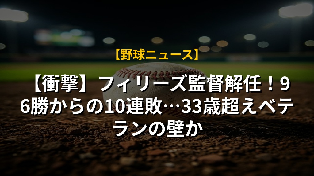 【衝撃】フィリーズ監督解任!96勝からの10連敗…33歳超えベテランの壁か