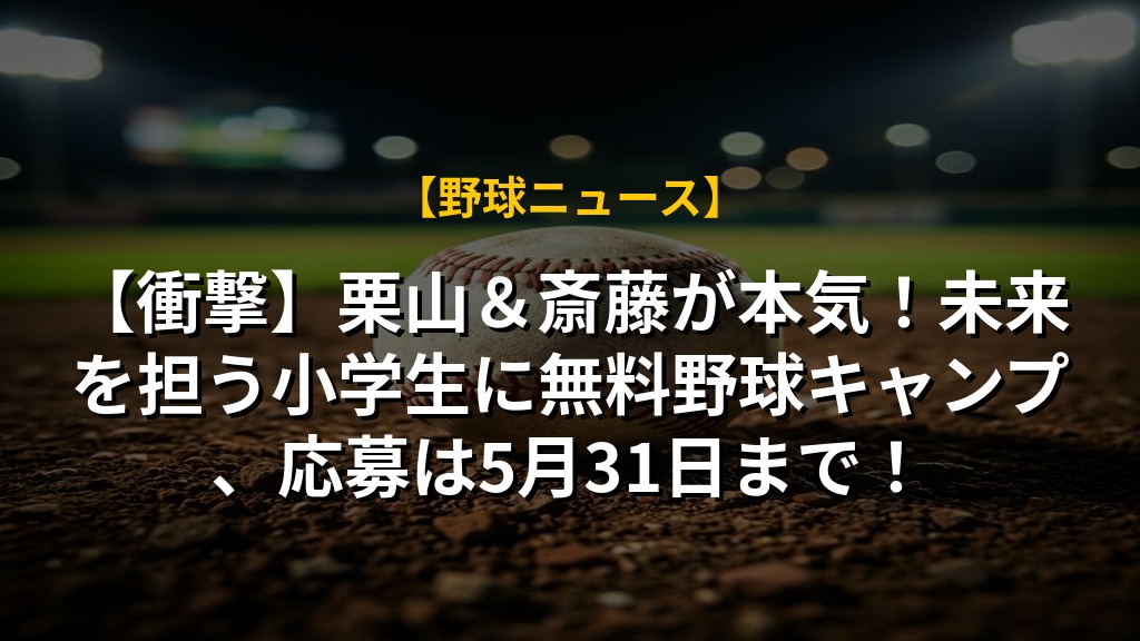 栗山英樹氏と斎藤佑樹氏が、未来を担う小学生向けに無料の野球キャンプ『野球未来キャンプ2026』を8月に開催されることが発表されました。これは、ただ技術を教えるだけでなく、お二人が次世代育成に真剣に取り組む姿勢が伝わってくる嬉しいニュースです。