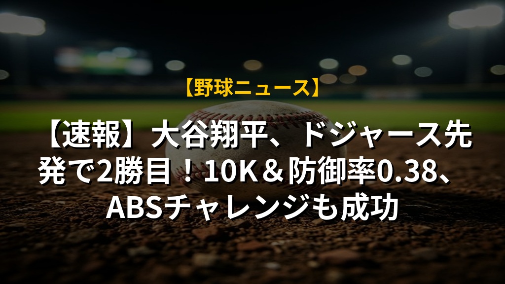 【速報】大谷翔平、ドジャース先発で2勝目!10K&防御率0.38、ABSチャレンジも成功