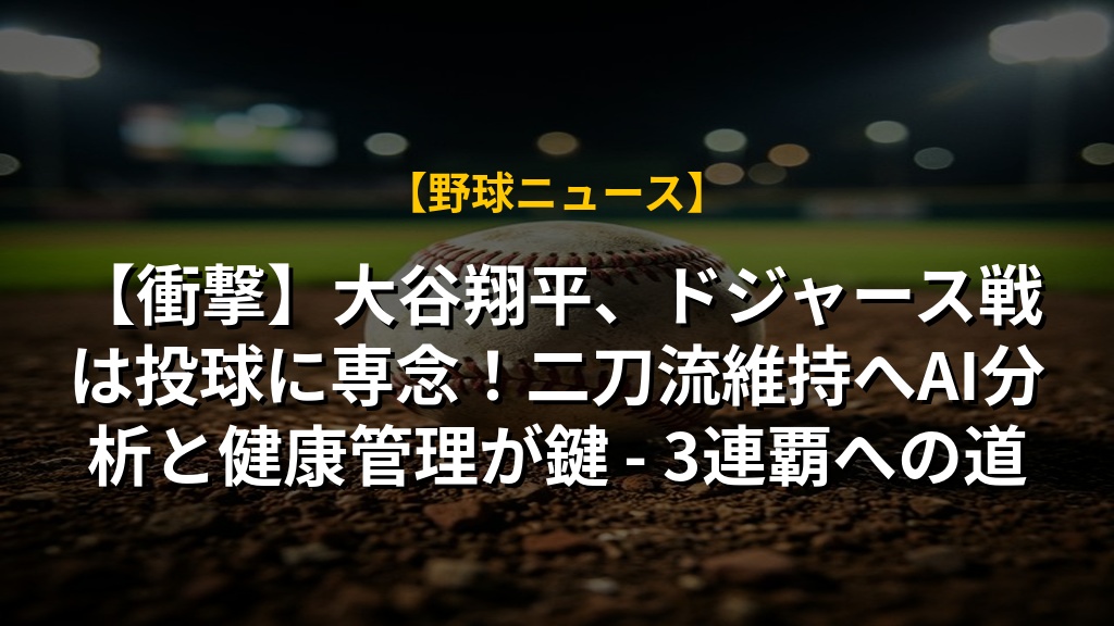 【衝撃】大谷翔平、ドジャース戦は投球に専念!二刀流維持へAI分析と健康管理が鍵 - 3連覇への道の注目ポイントまとめ