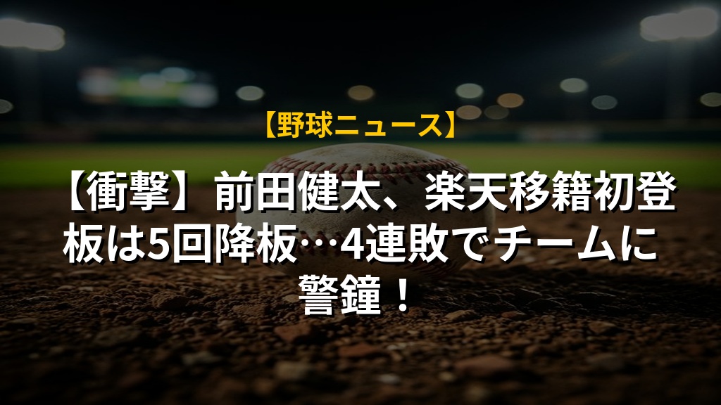 楽天イーグルスへの移籍後初登板となった前田健太投手の結果は、単なる敗戦以上の意味を持ちます。