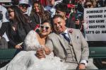 - 野球好きの二人は、試合観戦を結婚式のスケジュールに組み込むほど。ファンとの交流も楽しんだ。