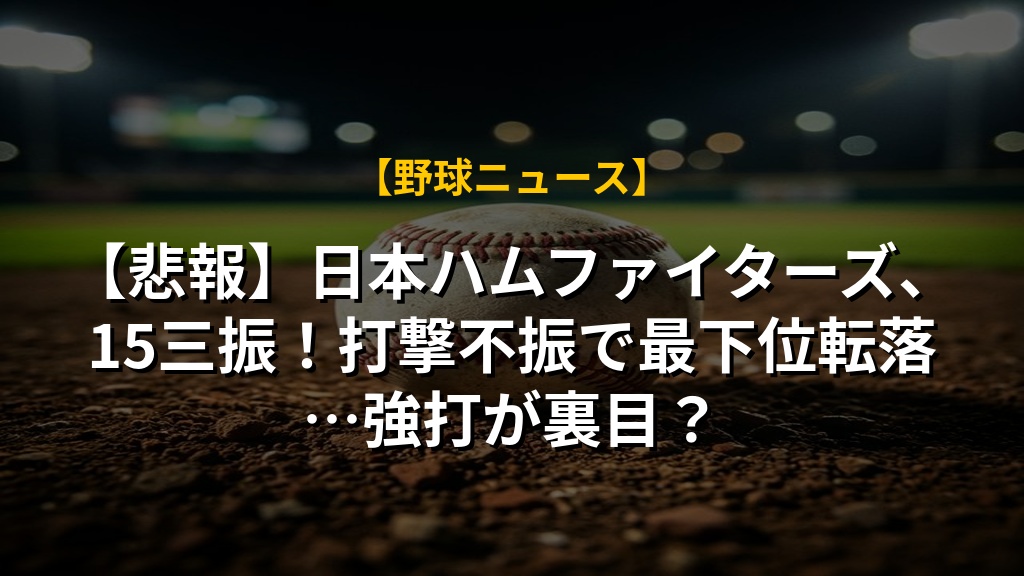 【悲報】日本ハムファイターズ、15三振!打撃不振で最下位転落…強打が裏目?の注目ポイントまとめ