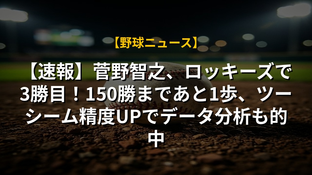菅野投手が今季3勝目を挙げ、日米通算149勝としました!多彩な球種を操り、特にツーシームの精度向上は目覚ましいです。高地での本塁打抑制に繋がり、データ分析に基づいた緻密な投球術は、今後の日本人投手の新たな道を示すかもしれません。ロッキーズの再建にも大きく貢献しており、150勝達成が待ち遠しいですね。ベテランの経験は、若い選手たちの成長にも繋がるはずです。