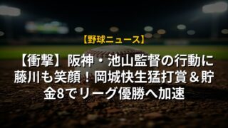 【衝撃】阪神・池山監督の行動に藤川も笑顔!岡城快生猛打賞&貯金8でリーグ優勝へ加速