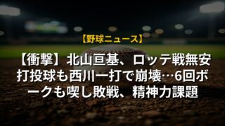 【衝撃】北山亘基、ロッテ戦無安打投球も西川一打で崩壊…6回ボークも喫し敗戦、精神力課題