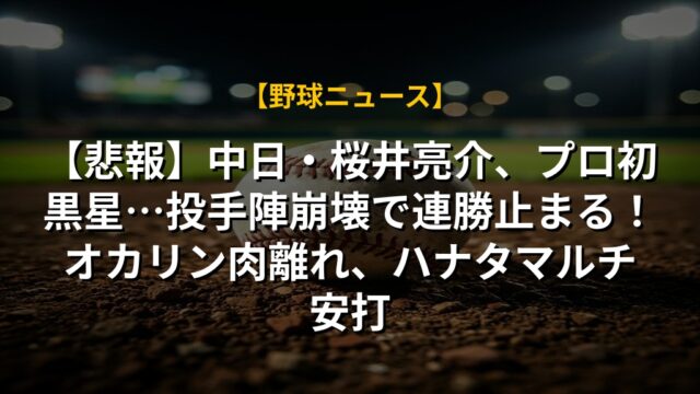 【悲報】中日・桜井亮介、プロ初黒星…投手陣崩壊で連勝止まる!オカリン肉離れ、ハナタマルチ安打