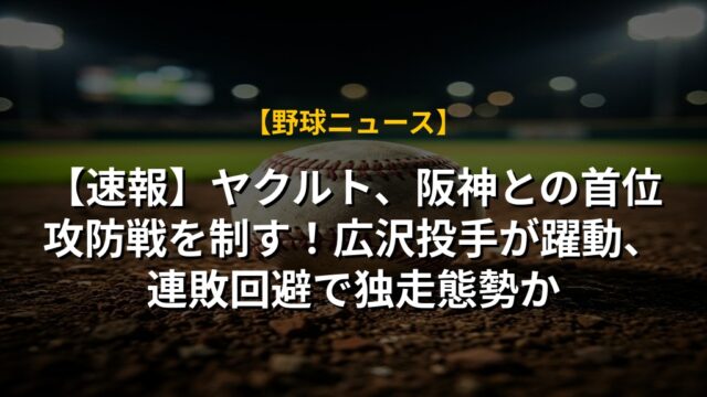 【速報】ヤクルト、阪神との首位攻防戦を制す!広沢投手が躍動、連敗回避で独走態勢か
