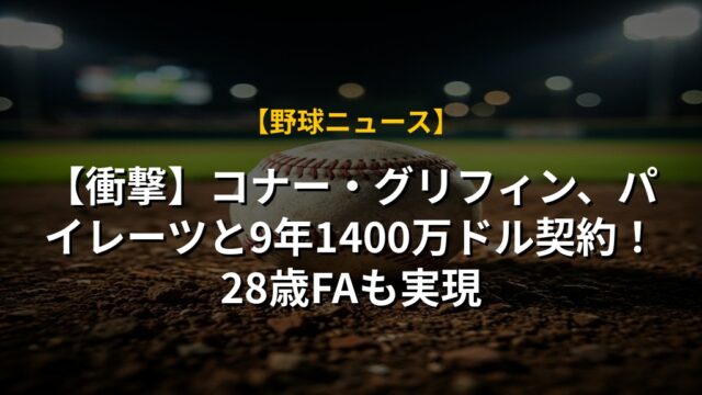 【衝撃】コナー・グリフィン、パイレーツと9年1400万ドル契約!28歳FAも実現