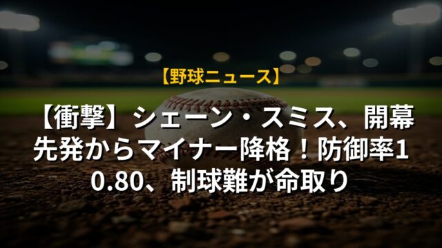 【衝撃】シェーン・スミス、開幕先発からマイナー降格!防御率10.80、制球難が命取り