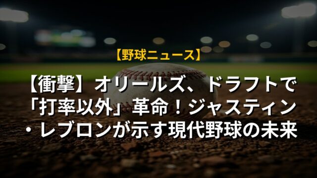 【衝撃】オリールズ、ドラフトで「打率以外」革命!ジャスティン・レブロンが示す現代野球の未来