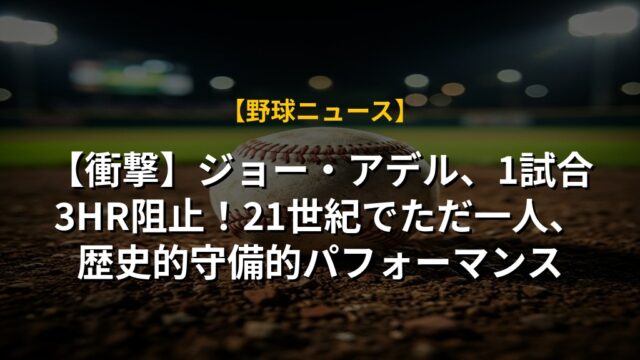 【衝撃】ジョー・アデル、1試合3HR阻止!21世紀でただ一人、歴史的守備的パフォーマンス