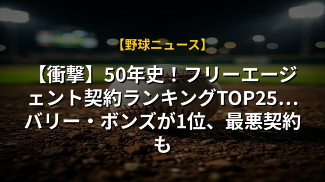 【衝撃】50年史!フリーエージェント契約ランキングTOP25…バリー・ボンズが1位、最悪契約も