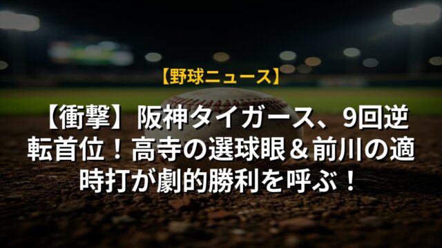 【衝撃】阪神タイガース、9回逆転首位!高寺の選球眼&前川の適時打が劇的勝利を呼ぶ!