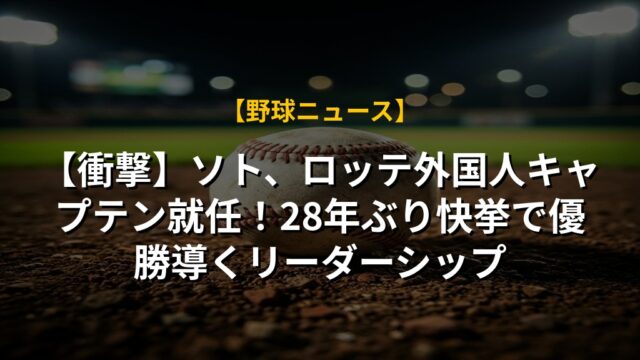 【衝撃】ソト、ロッテ外国人キャプテン就任!28年ぶり快挙で優勝導くリーダーシップ
