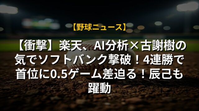 【衝撃】楽天、AI分析×古謝樹の気でソフトバンク撃破!4連勝で首位に0.5ゲーム差迫る!辰己も躍動