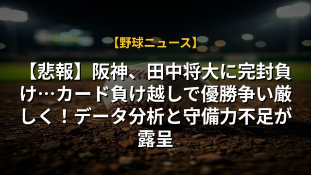 【悲報】阪神、田中将大に完封負け…カード負け越しで優勝争い厳しく!データ分析と守備力不足が露呈