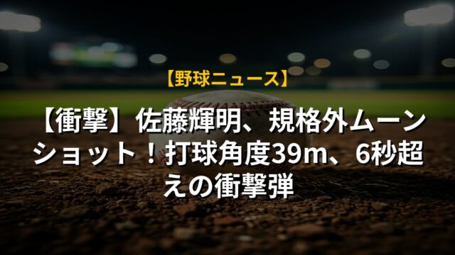 【衝撃】佐藤輝明、規格外ムーンショット!打球角度39m、6秒超えの衝撃弾