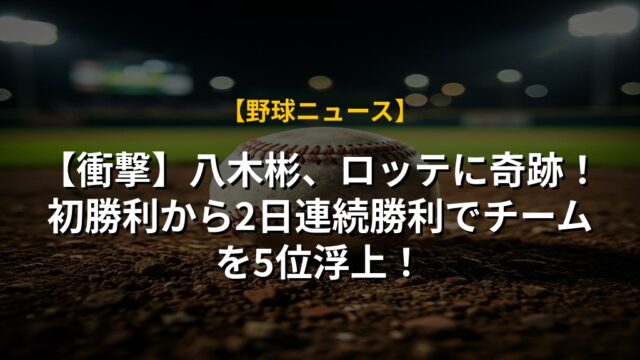 【衝撃】八木彬、ロッテに奇跡!初勝利から2日連続勝利でチームを5位浮上!