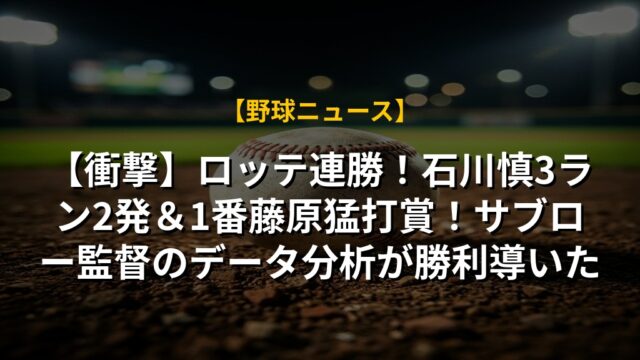 【衝撃】ロッテ連勝!石川慎3ラン2発&1番藤原猛打賞!サブロー監督のデータ分析が勝利導いた