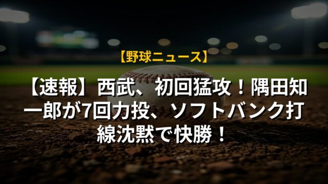 【速報】西武、初回猛攻!隅田知一郎が7回力投、ソフトバンク打線沈黙で快勝!