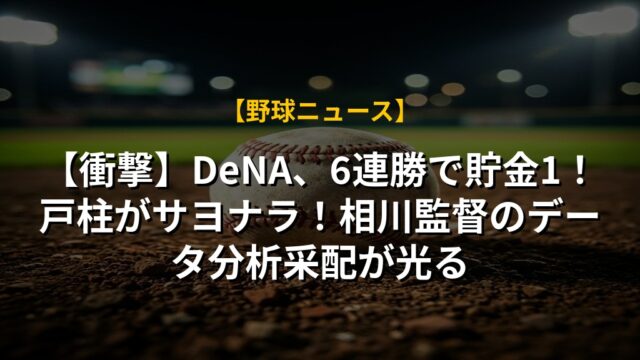 【衝撃】DeNA、6連勝で貯金1!戸柱がサヨナラ!相川監督のデータ分析采配が光る