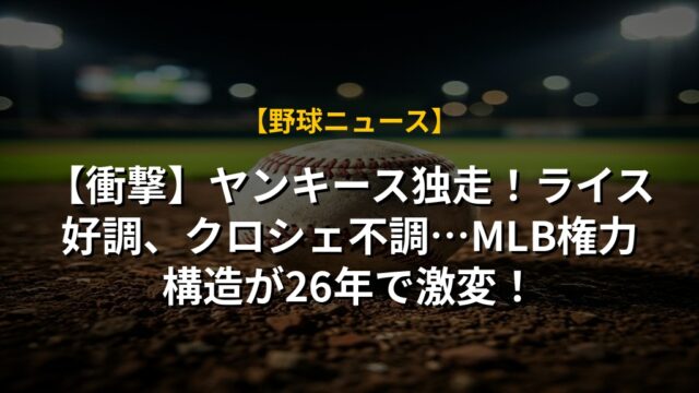 【衝撃】ヤンキース独走!ライス好調、クロシェ不調…MLB権力構造が26年で激変!