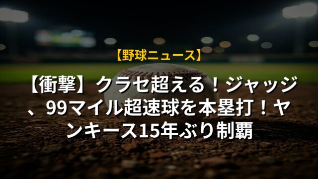 【衝撃】クラセ超える!ジャッジ、99マイル超速球を本塁打!ヤンキース15年ぶり制覇
